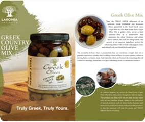 100% Pure Greek Olive Oil. Our Olive Oil is made only with Olives from Lakonia Greece.